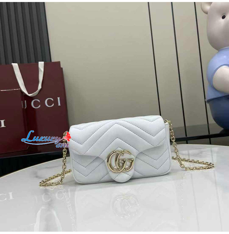 [스페셜오더]GUCCI-841290 9050 구찌 화이트 가죽 GG 마몽 미니 숄더백