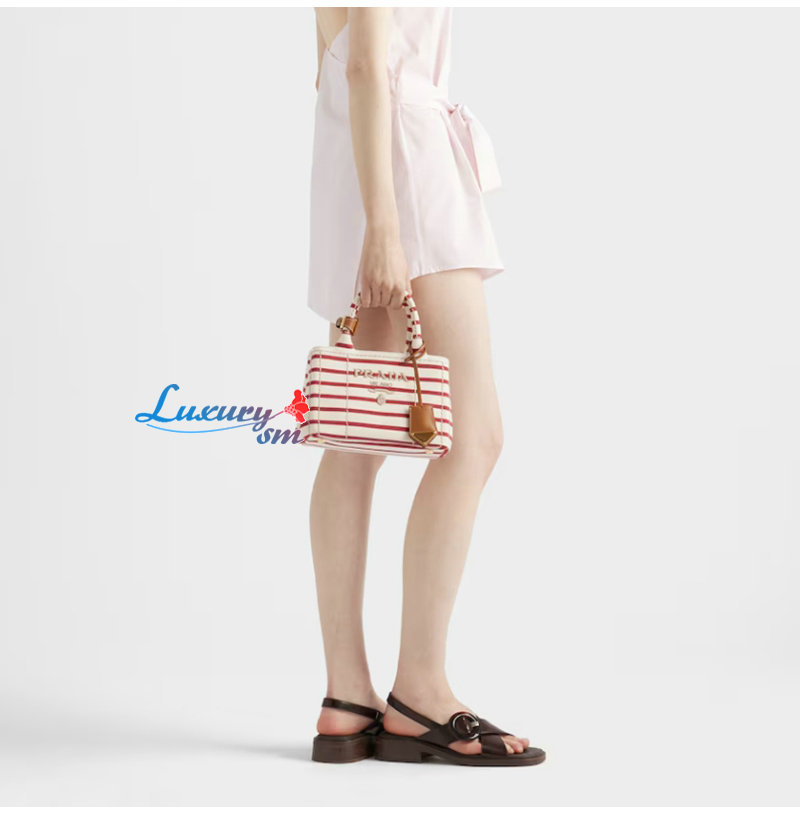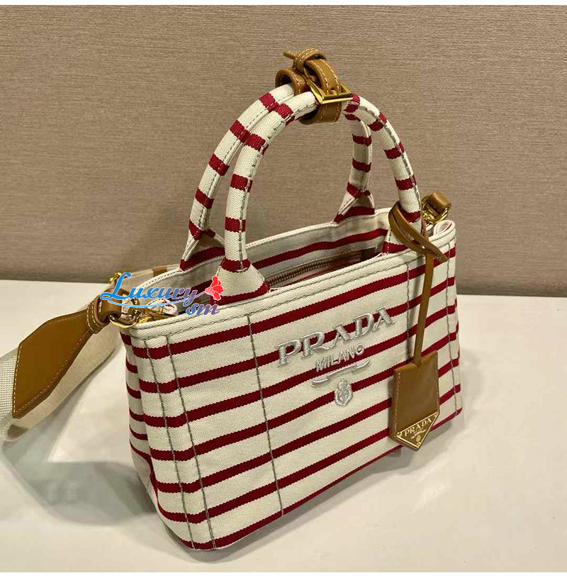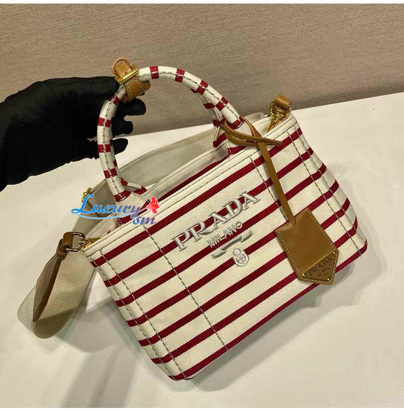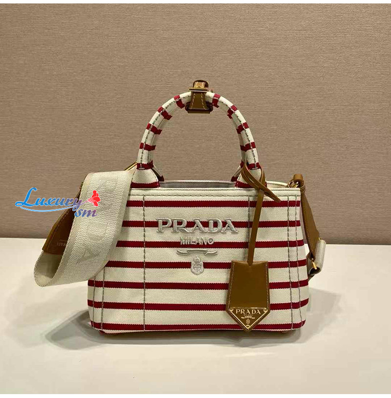 [스페셜오더]PRADA-1BA038 프라다 레드 스트라이프 코튼 캔버스 미니백