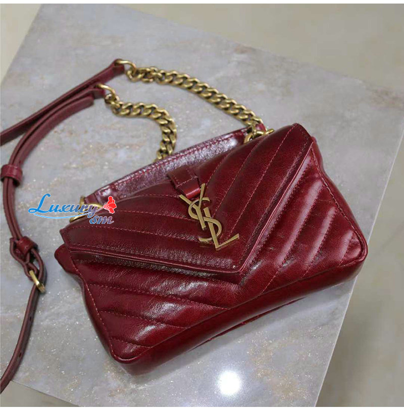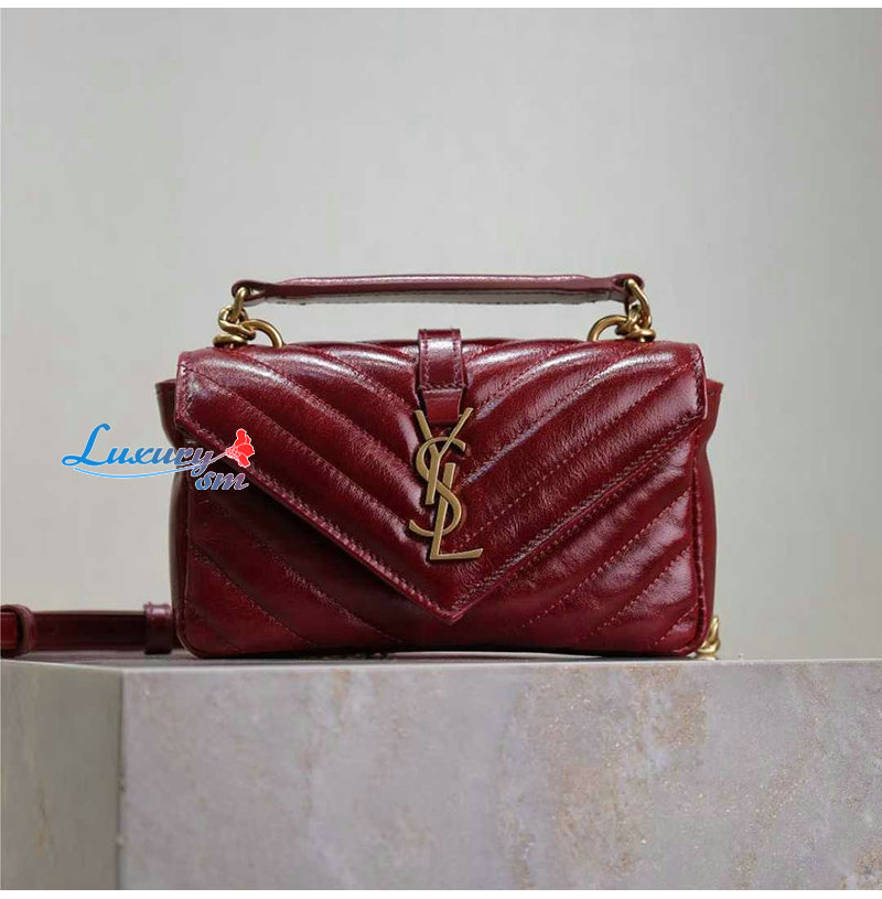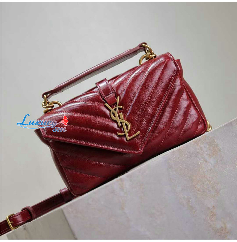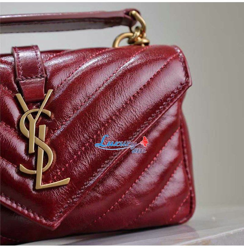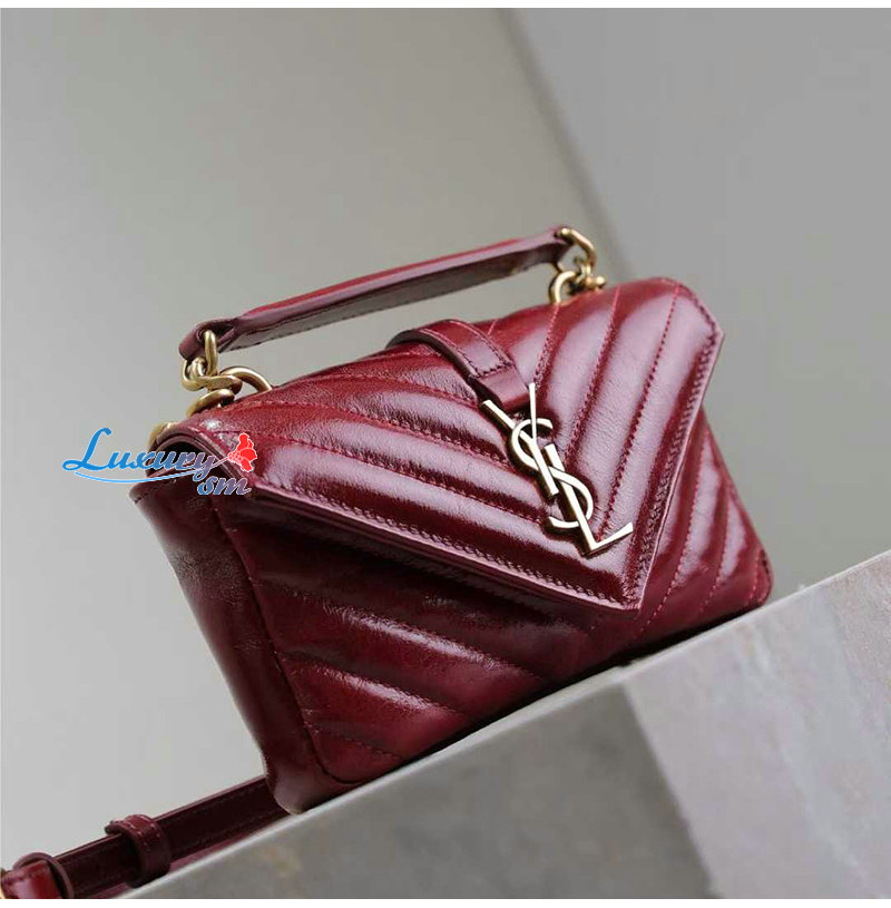 [스페셜오더]SAINT LAURENT-779430 생 로랑 버건디 유광 가죽 COLLEGE 미니