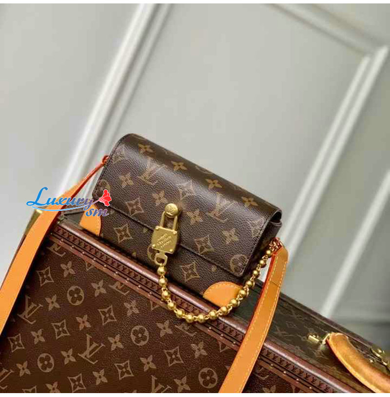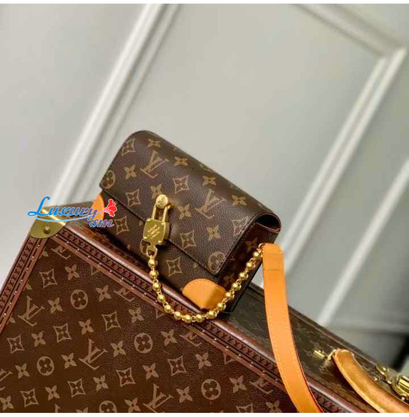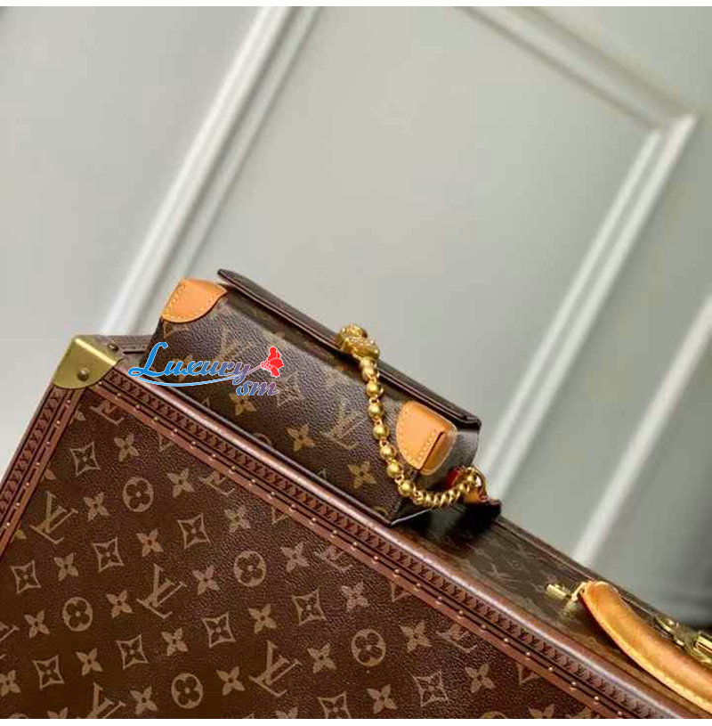 모노그램 캔버스 소재에 골드 색상 하드웨어와