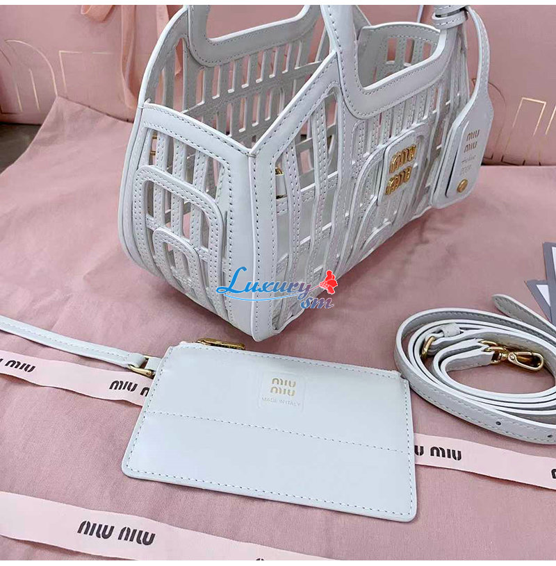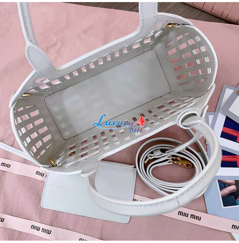 [스페셜오더]MIUMIU-5BA294 미우미우 화이트 위빙 모티프 가죽 바스켓