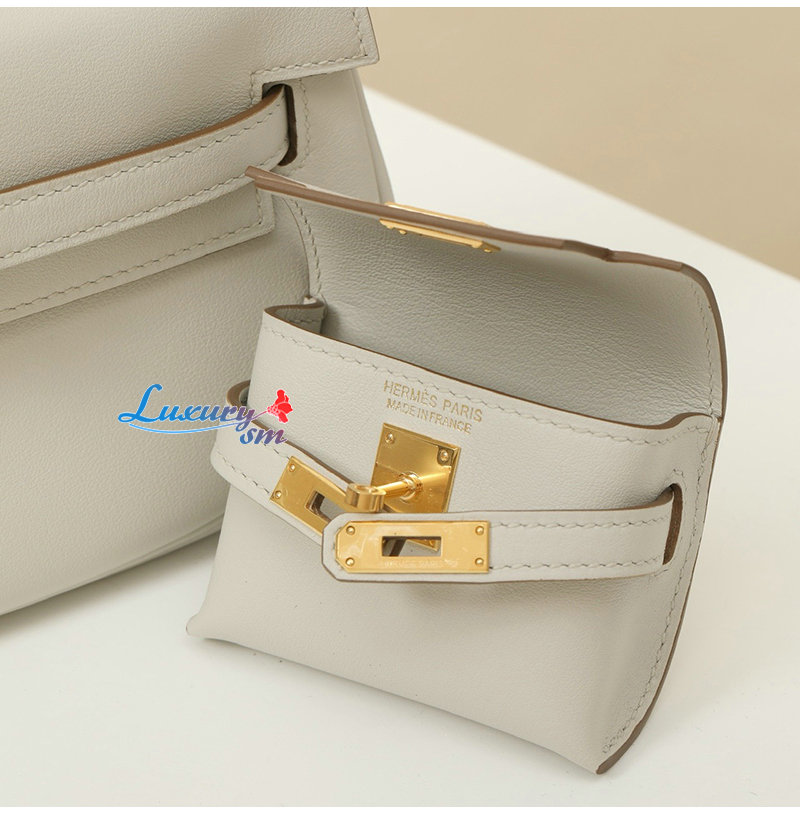 [스페셜오더]HERMES-KM17 에르메스 화이트 금장 SWIFT 가죽 켈리 무브