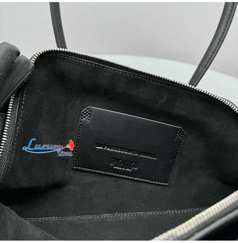 라 파세지아타 스몰 탑 핸들 백, 블랙 송아지