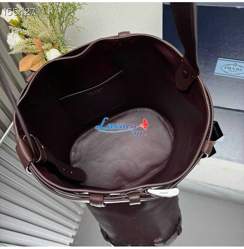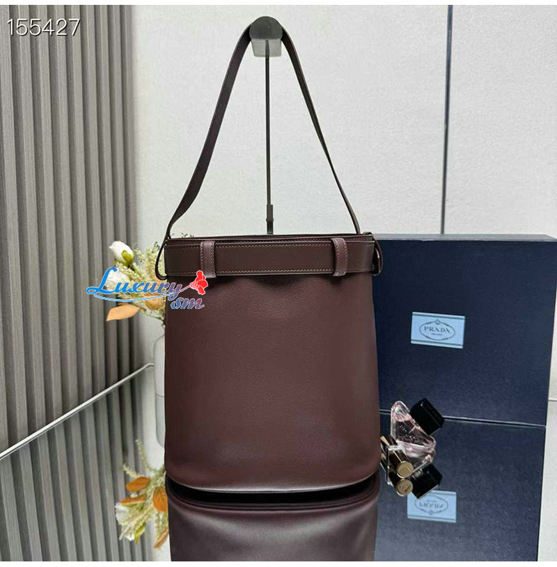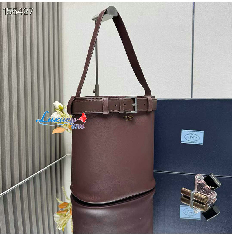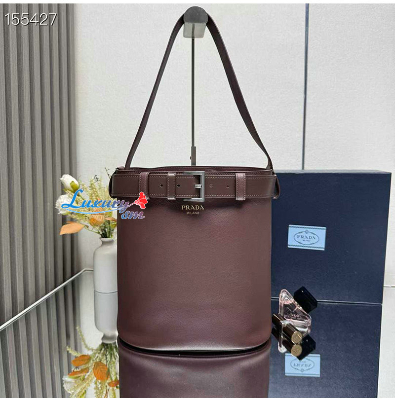[스페셜오더]PRADA-1BE085 프라다 브라운 버클 벨트 가죽 버킷 백