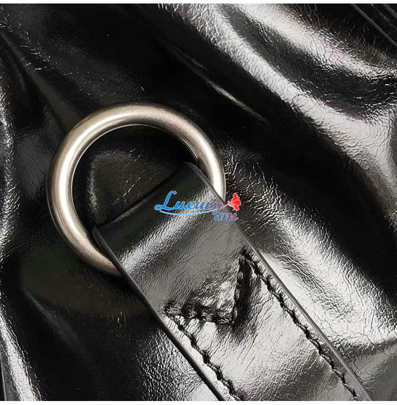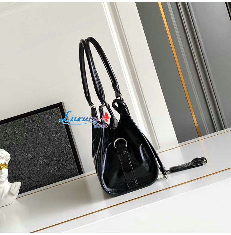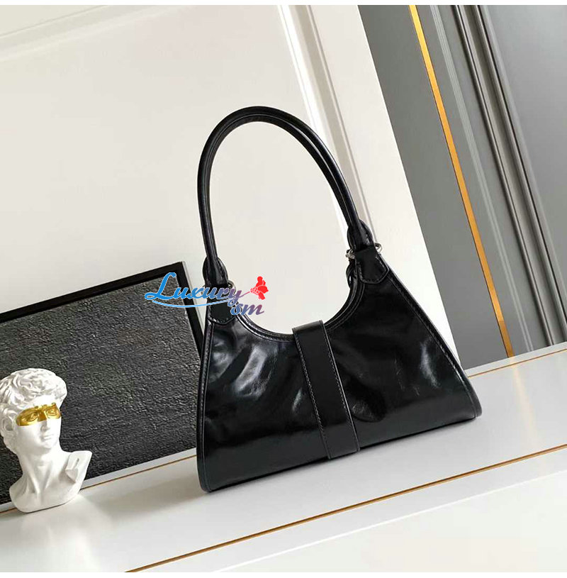 트라페즈 실루엣과 길게 디자인된 핸들은 숄더백으