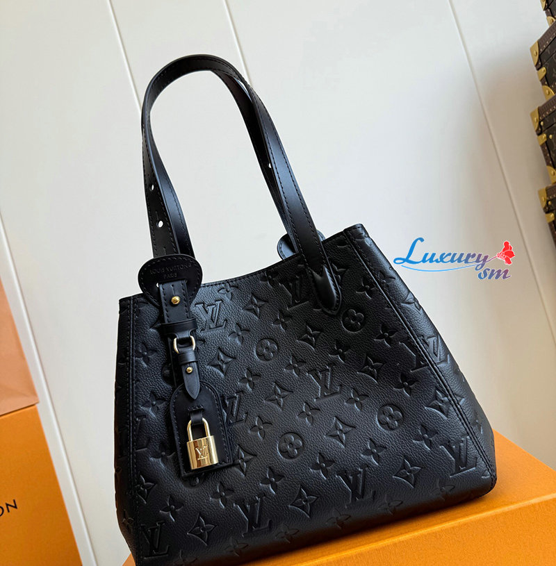 장식적인 LV 패드락과 네임 택을 포함한 시그니처 디테일이 특징.