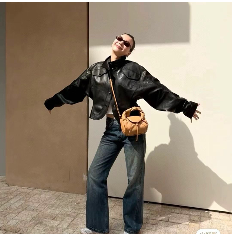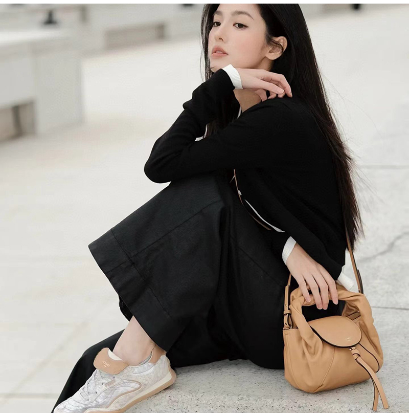블랙 컬러의 송아지 가죽 소재.