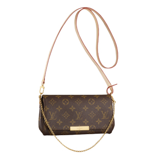 모노그램 캔버스 소재의 페이보릿 MM 클러치는 탈착 가능한 레더 스트랩과 골드 체인이 있어 숄더나 손에 가지고 다닐수 있습니다.
