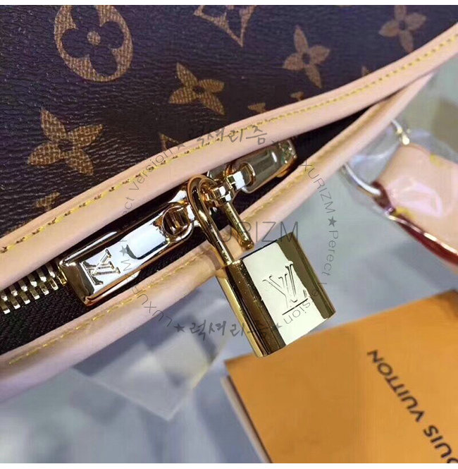 - 모노그램 캔버스 라인 - 크로스 그레인 둥근 실루엣의 가죽 손잡이 세탁 가능한 라이닝