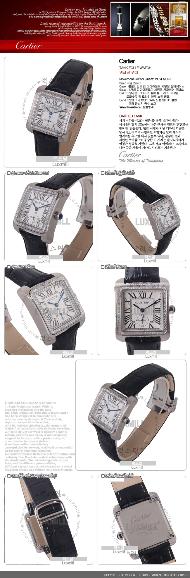 CARTIER-96242 여성용 시계 큐빅 실버 블랙