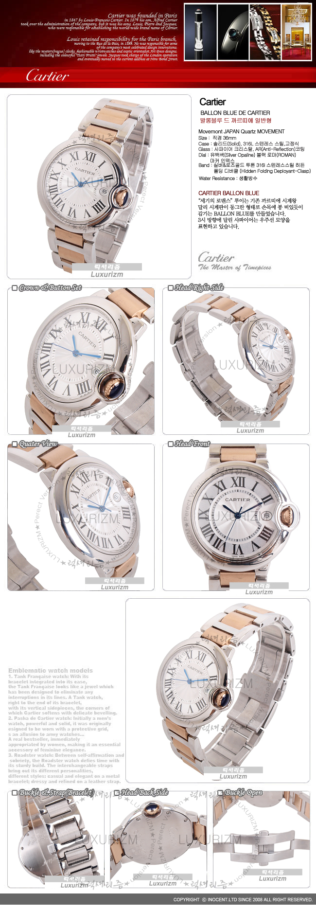 Cartier-07114 까르띠에 발롱블루 드 2 Line 콤비 쿼츠 36MM 남녀공용