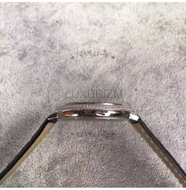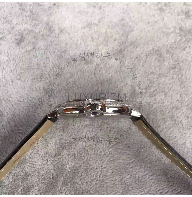 -스테인레스 스틸 케이스/사파이어 글래스/베젤 다이아 세팅/가죽 스트랩.