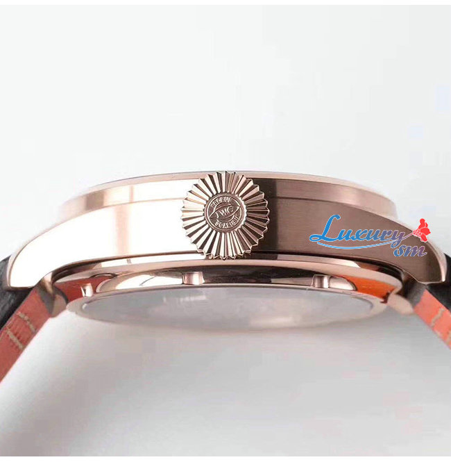 -레드골드(IPG)특수 도금 케이스/스페셜 인그레이빙 백케이스/브라운 가죽스트랩.