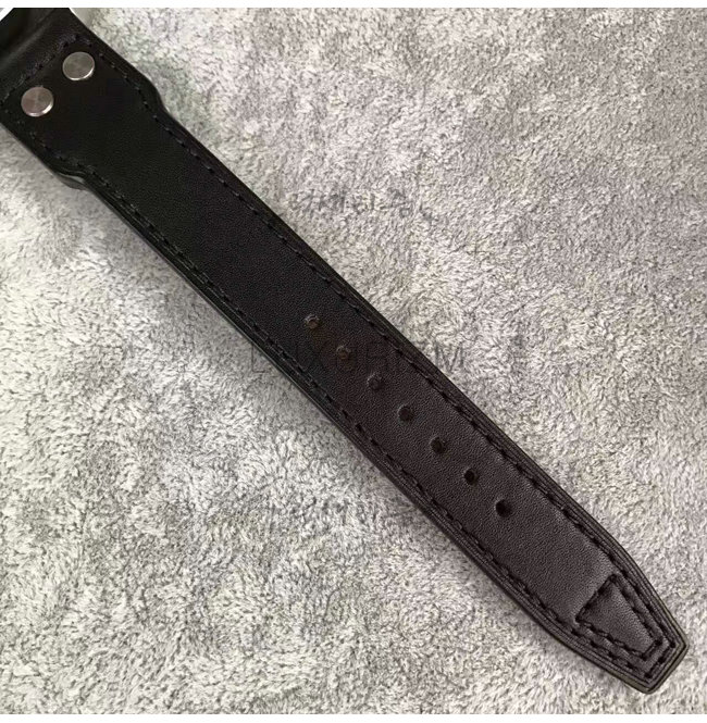 -스테인레스 케이스/내부 연철 케이스 /스크류 크라운 /블랙 가죽 스트랩/5 기압 생활 방수.