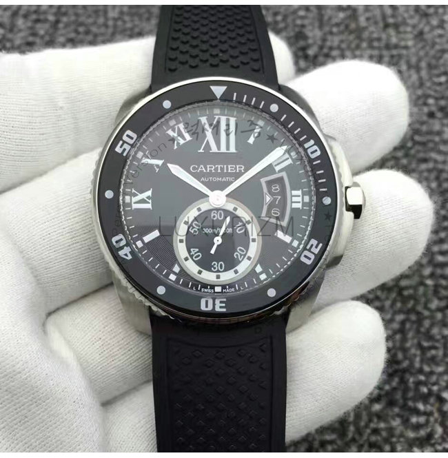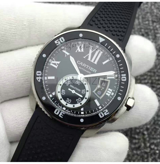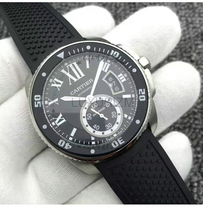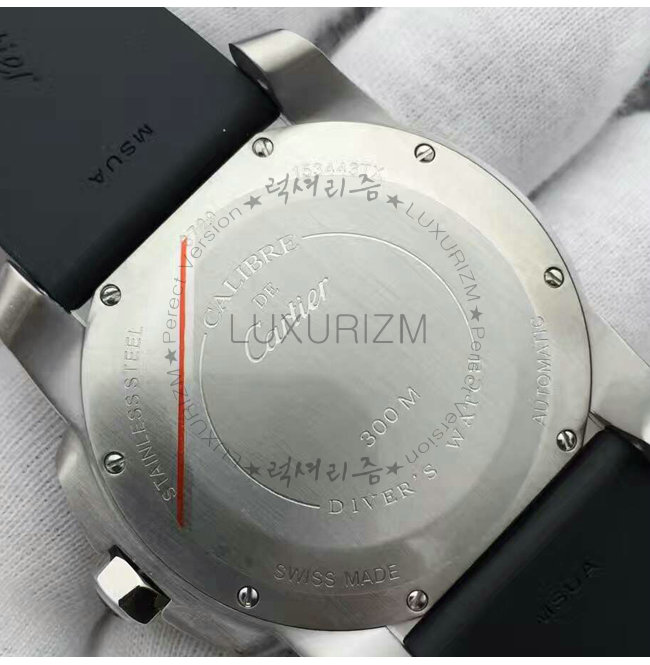 칼리브 드 까르띠에 다이버 워치는 진정한 다이버 시계입니다. 방수 기능 러버스트랩