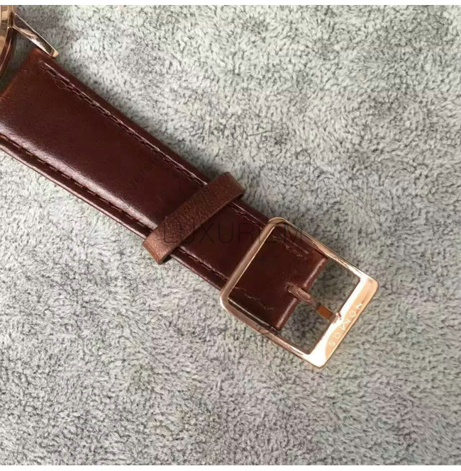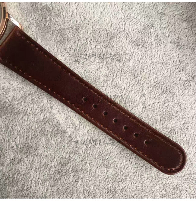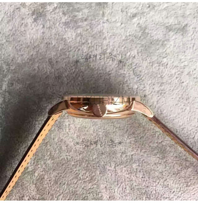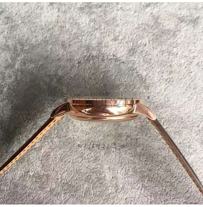 -18k 로즈 골드 특수 이온 전착 도금(IPG)/브라운 레더 벨트식 스트랩/생활방수.