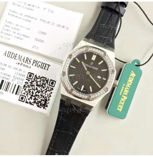Audemars Piguet-오데마 피게 로얄 오크 쿼츠 스틸 다이아 블랙다이얼 레이디스 워치 33mm