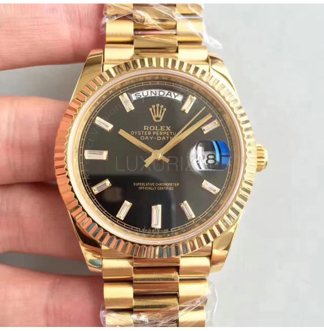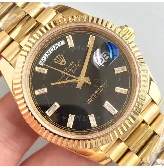 #ROLEX 오이스터 퍼페츄얼 Day-Date 데이-데이트 옐로우 골드 블랙 다이얼 40mm.