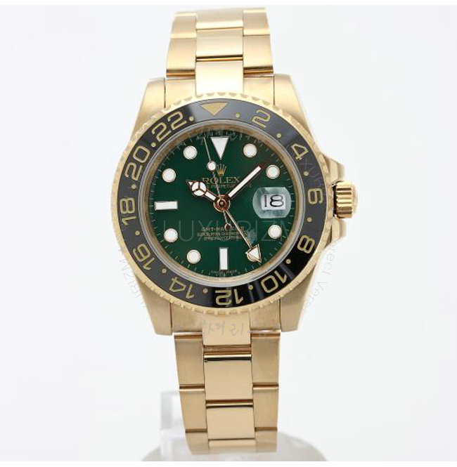 [스페셜오더]ROLEX-롤렉스 오이스터 퍼페츄얼 GMT-MASTER II 데이트 옐로우 골드 (18K 포금) 그린다이얼 워치 40mm