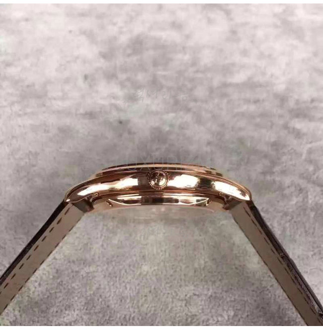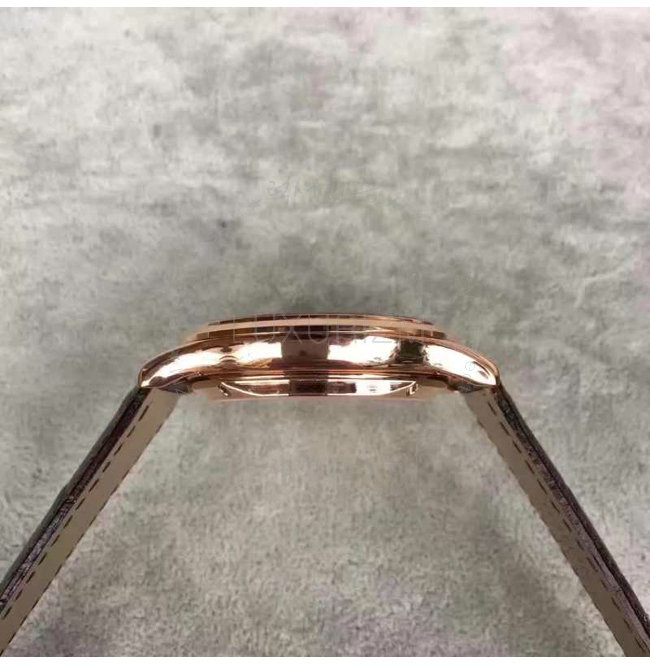 -레드골드IPG특수이온 도금 케이스/사파이어 투명 케이스백/가죽스트랩 핀버클.