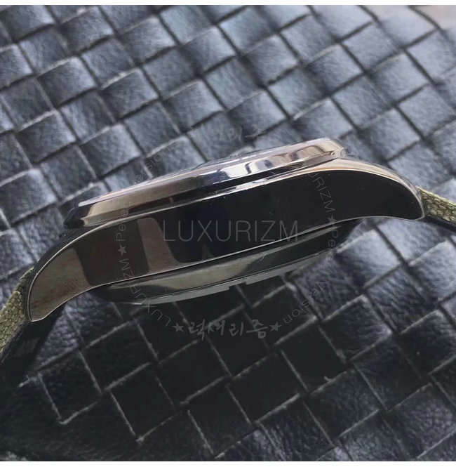 -세라믹 케이스/내부 연철 케이스/스쿠류 인 크라운/3 시 데이터 창/엠보싱 가죽스트랩.