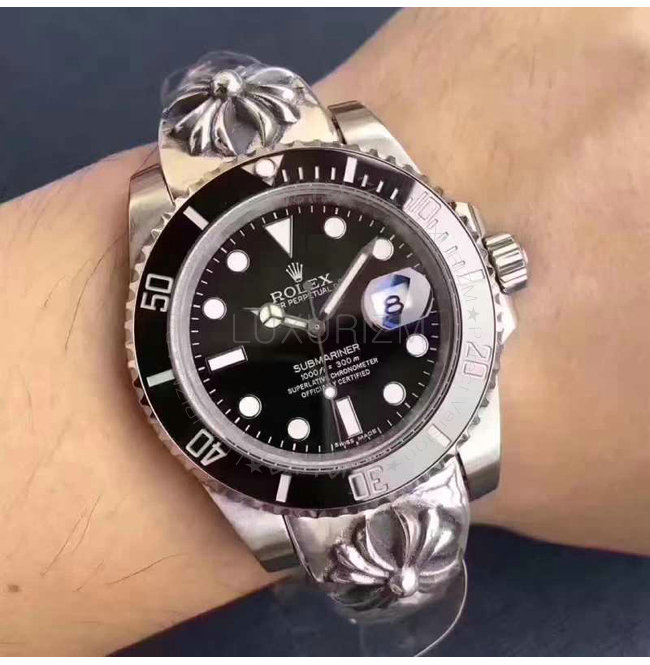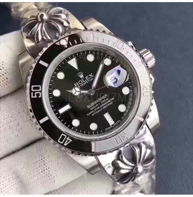 [스페셜오더]ROLEX-롤렉스 서브마리너 데이트 블랙다이얼 크롬하츠 브레이슬릿 콜라보레이션 시계 40mm