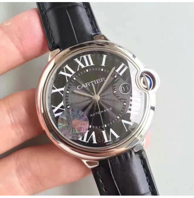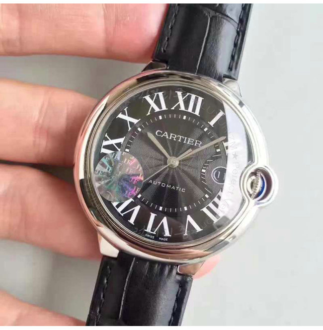 [스페셜오더]Cartier-까르띠에 발롱 블루 드 까르띠에 스틸 블랙다이얼 가죽스트랩 워치 42mm