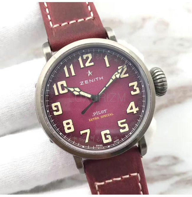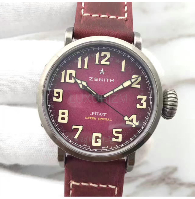 [스페셜오더]ZENITH-제니스 파일럿 엑스트라 스페셜 에이지드 스틸 버건디다이얼 워치 40mm