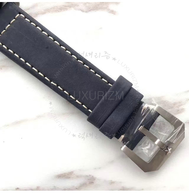 -에이지드 스틸 케이스/사파이어 글래스/누벅 가죽 스트랩.핀 버클.