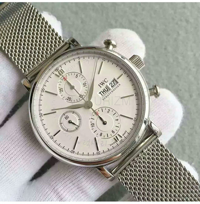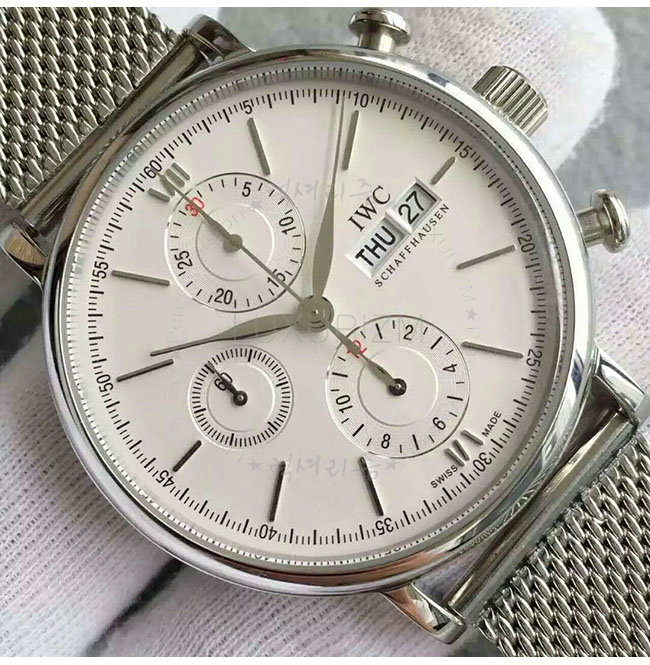 [스페셜오더]IWC-IW391009 아이더블유씨 포르토피노 크로노그래프 매쉬 스틸 실버다이얼 시계 42mm