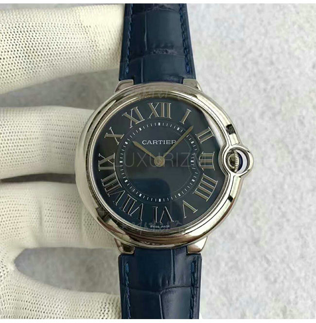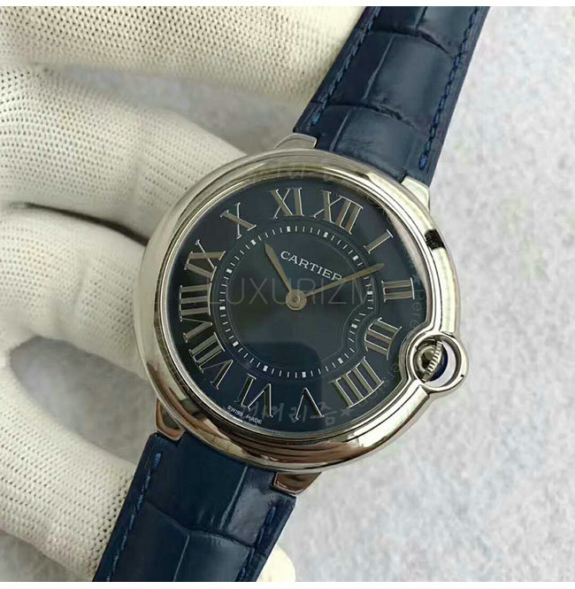 [스페셜오더]Cartier-까르띠에 발롱 블루 드 까르띠에 스틸 블루다이얼 가죽스트랩 워치 40mm