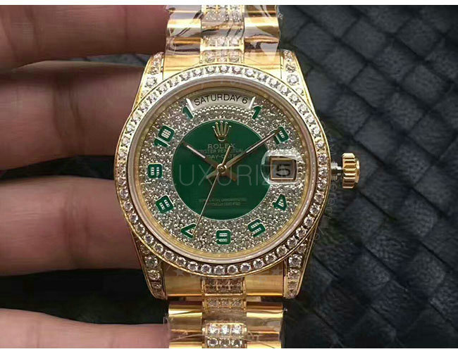 [스페셜오더]ROLEX-11813 롤렉스 오이스터 퍼페츄얼 데이-데이트 옐로우 골드 그린다이얼 시계 36mm 가격 : 780,000원
