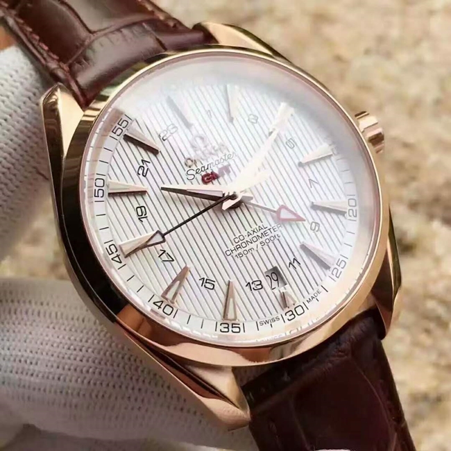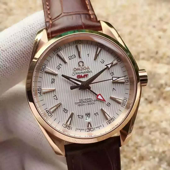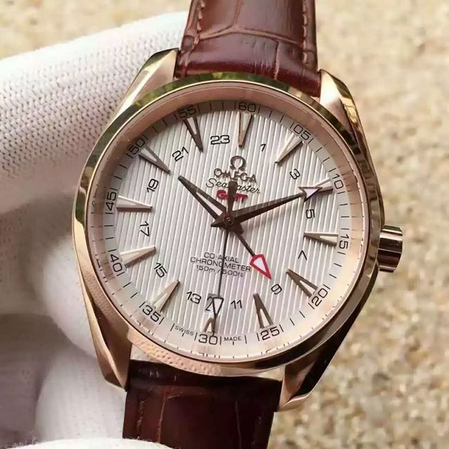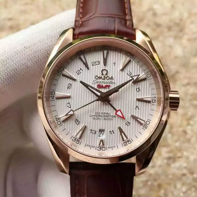 [스페셜오더]OMEGA-오메가 씨마스터 아쿠아 테라 150M 코-액시얼 GMT 레드 골드 실버다이얼 워치 43mm