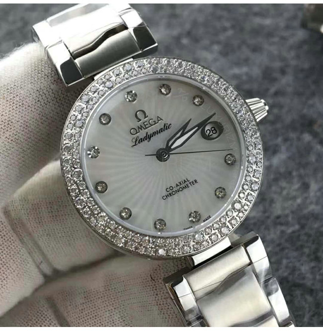 [스페셜오더]OMEGA-오메가 드 빌 레이디매틱 다이아 스틸 화이트 자개다이얼 레이디스 워치 34mm