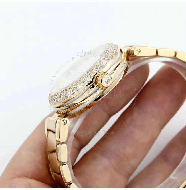 [스페셜오더]OMEGA-오메가 드빌 레이디매틱 레드 골드 다이아 인덱스 화이트 여성시계 34mm