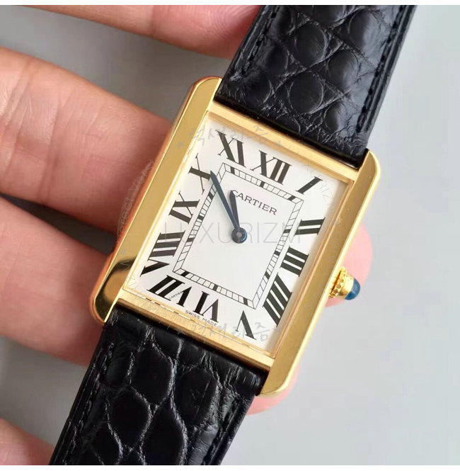 -탱크 솔로 워치 small 모델 쿼츠 무브먼트. 옐로우 골드 케이스