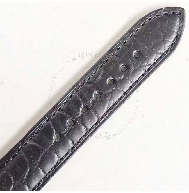 -스틸 핸즈 사파이어 크리스탈 원형 스케일 장식의 앨리게이터 가죽스트랩.