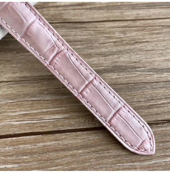 -사파이어 글래스 핑크 앨리게이터 가죽 스트랩 조절 가능한 스틸 더블 디플로이언트 버클.