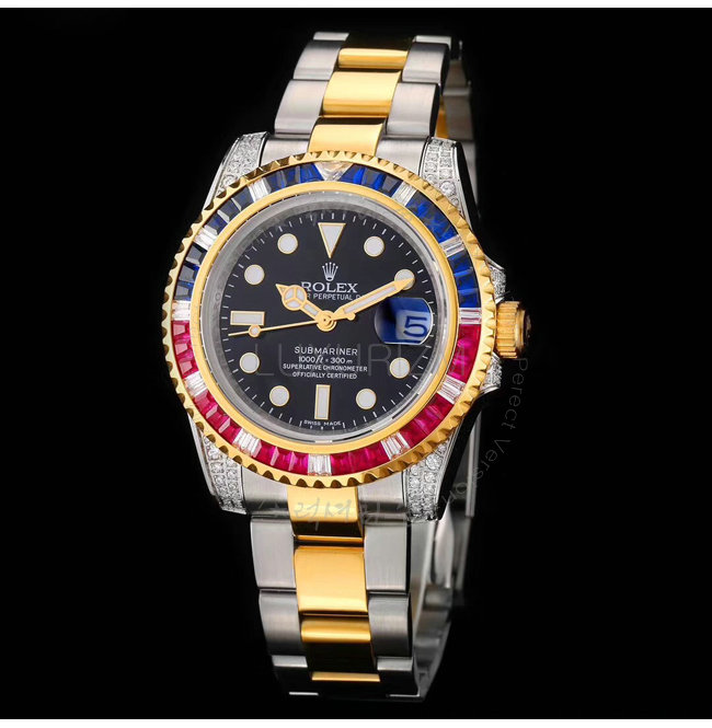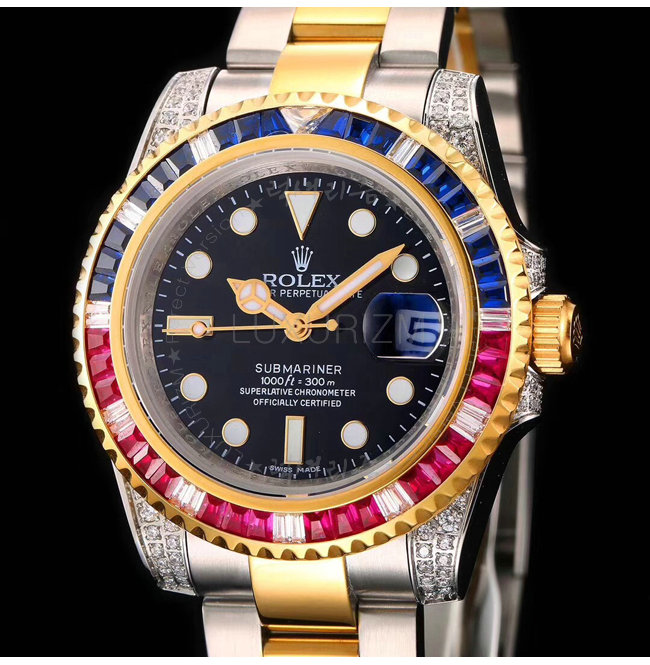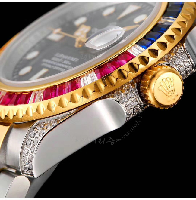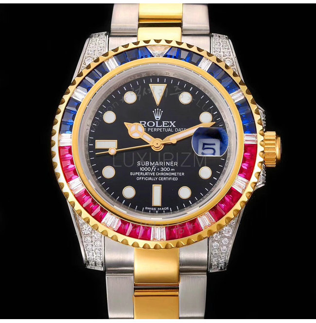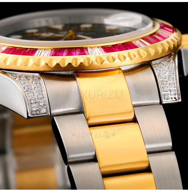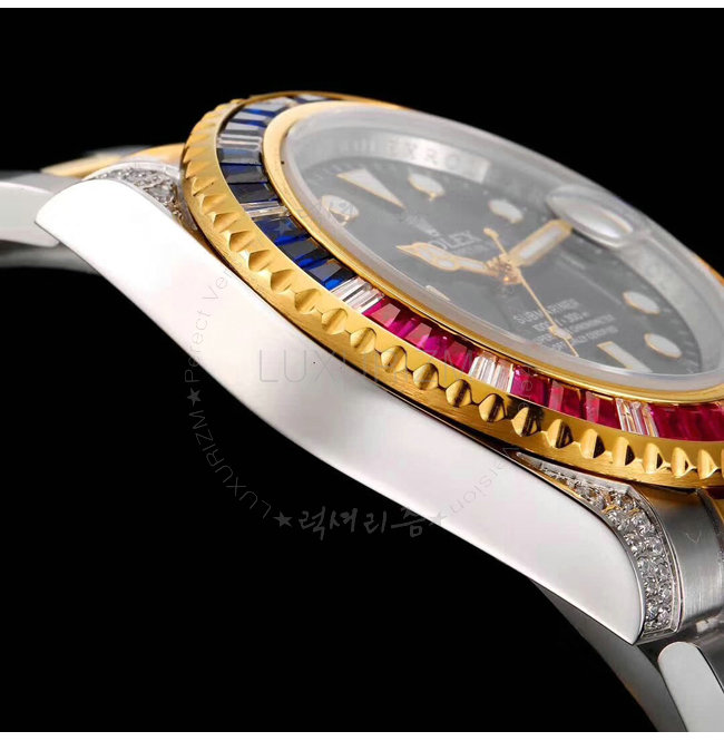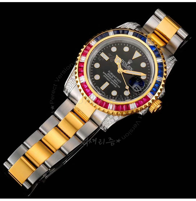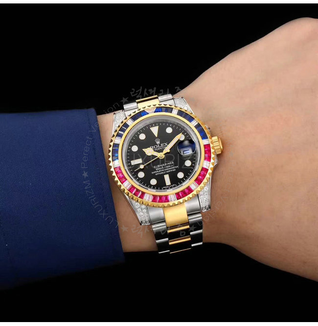 [스페셜오더]ROLEX-1888 롤렉스 오이스터 퍼페츄얼 서브 마리너 블루 핑크 옐로우 골드 사파이어 베젤 블랙 다이얼 스틸 워치 40mm