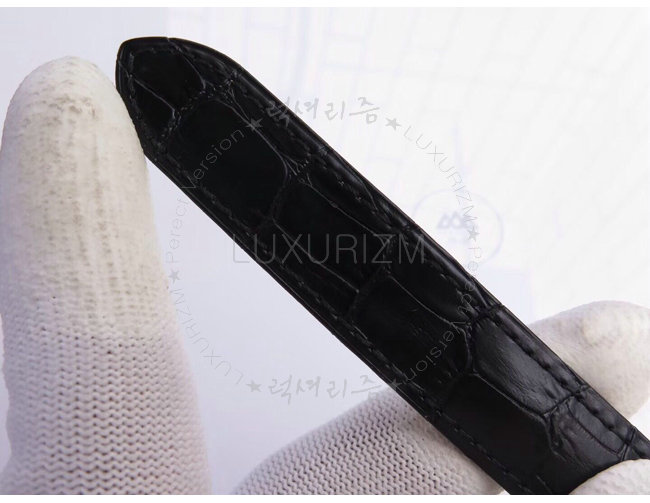 -글래스와 케이스백 앨리게이터 가죽스트랩 조절가능한 스틸 더블 디플로이언트 버클.