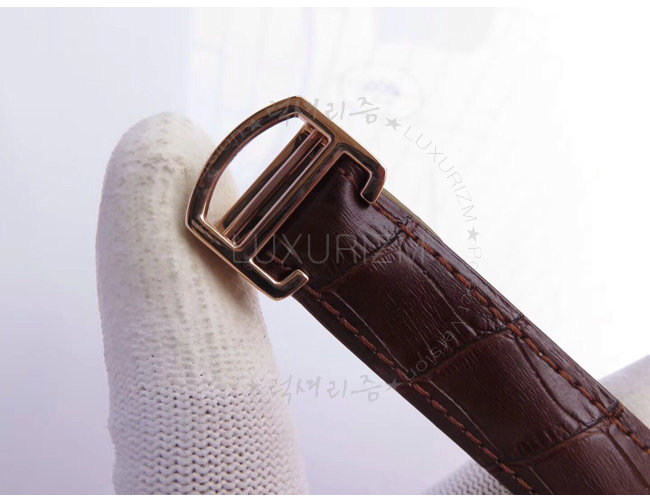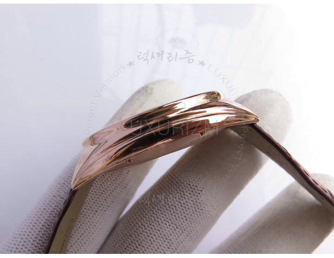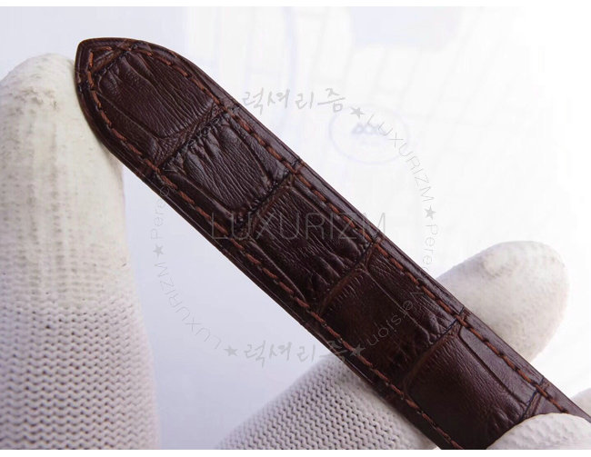 -케이스백. 앨리게이터 가죽 스트랩 조절 가능한 18K 핑크 골드 더블 디플로이언트 버클.