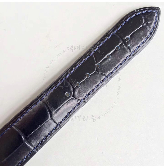 골드 케이스를 자랑하며 핸드스티치된 가죽 스트랩