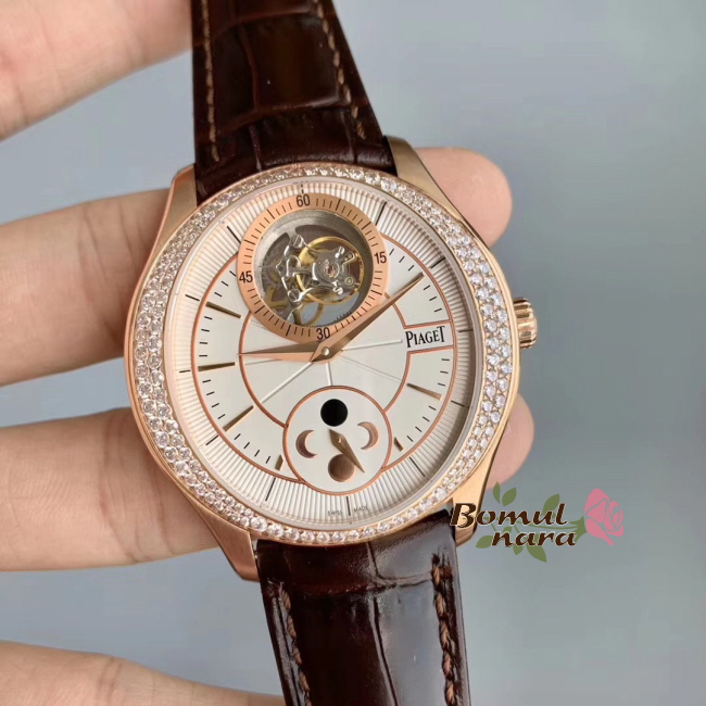 [스페셜오더]PIAGET-피아제 Black Tie 컬렉션 뚜르비옹 GOUVERNEUR 핑크 골드 다이아몬드 맨스시계 43mm