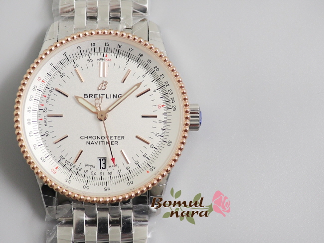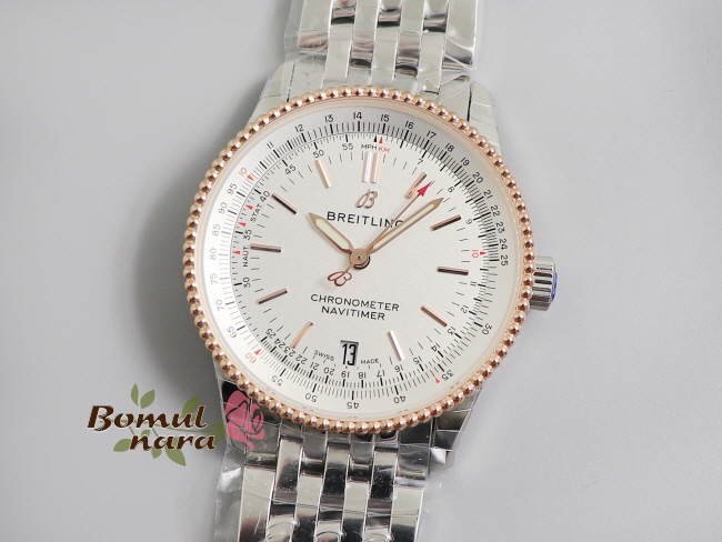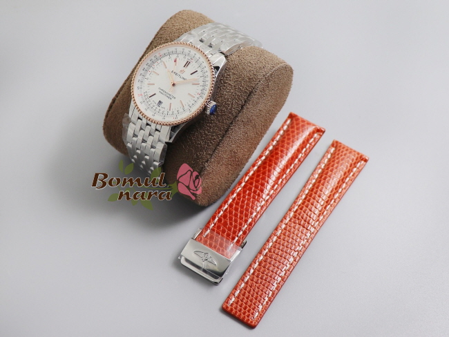[스페셜오더]BREITLING-브라이틀링 내비타이머 오토매틱 레드 골드 스틸 실버 Mans 시계 38mm