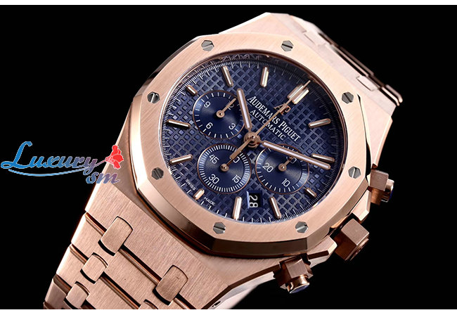 [AP전문OM팩토리][스페셜오더]Audemars Piguet-오데마 피게 로얄 오크 셀프와인딩 크로노그래프 핑크골드 블루다이얼 시계41mm