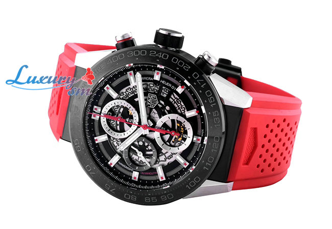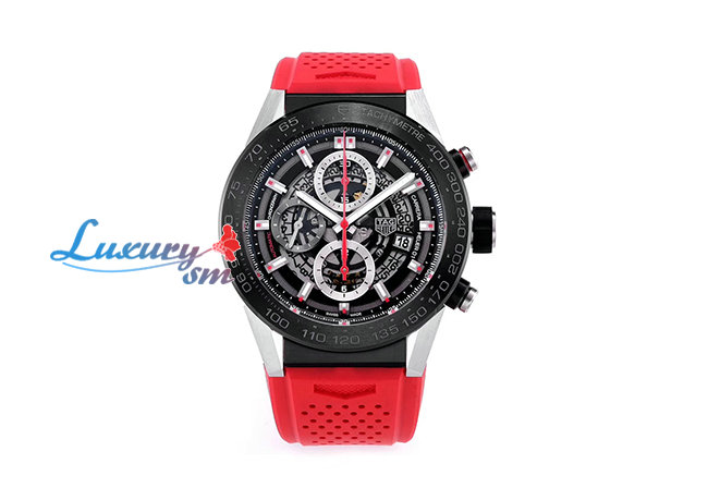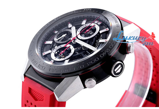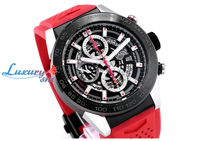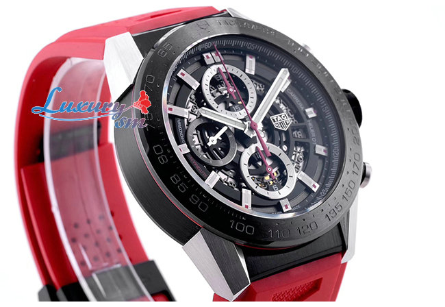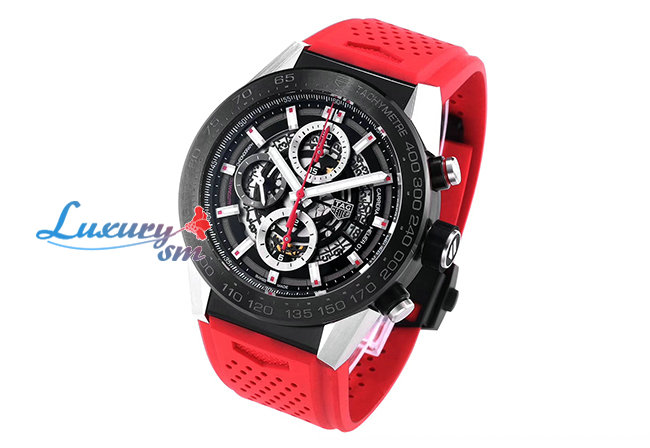 [스페셜오더]TAG Heuer-태그호이어 타키메타 카레라 레드 스트랩 오토메틱 시계 45mm