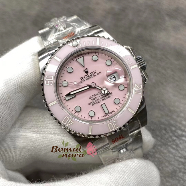 ★[AR팩토리]ROLEX-롤렉스 서브마리너 핑크 세라믹 베젤 스틸 남녀공용 시계 40mm