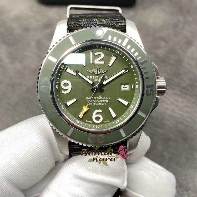 [스페셜오더]BREITLING-브라이틀링 슈퍼오션 아우터노운 스틸 그린 시계 44mm