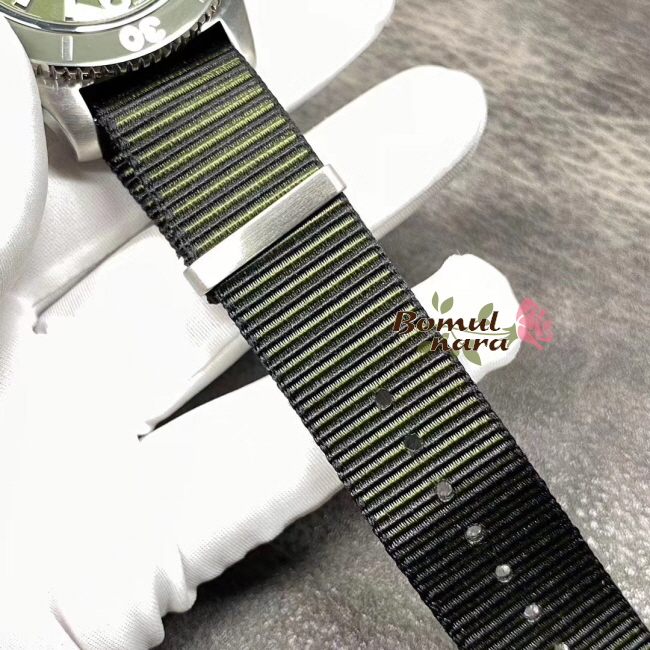 특수 소재인 에코닐 패브릭으로 만든 나토스트랩을 제공