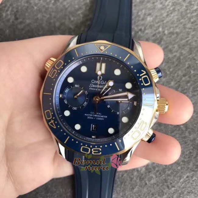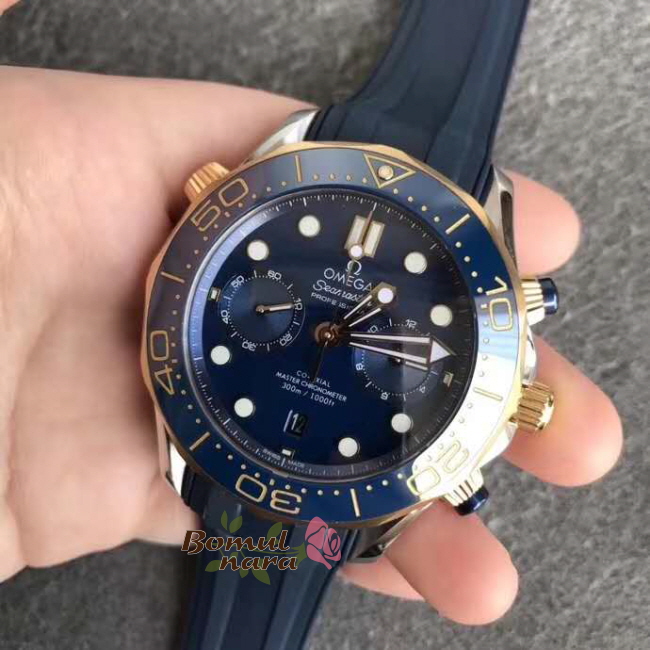 [VS팩토리 오메가전문][스페셜오더]OMEGA-오메가 씨마스터 다이버 300M 크로노미터 크로노그래프 옐로우 골드 블루 워치 44mm
